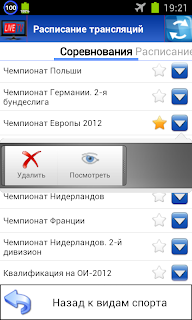 Это позволит облегчить интерфейс программы, сэкономить жизнь аккумулятора и память телефона. Объясню почему. Программа периодически скачивает расписание с сайта и сохраняет его в базу данных. Если вы удалите вид спорта или турнир то информация о нем не будет обрабатываться программой и не будет занимать место.