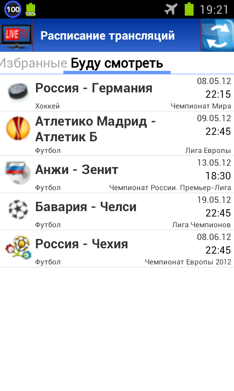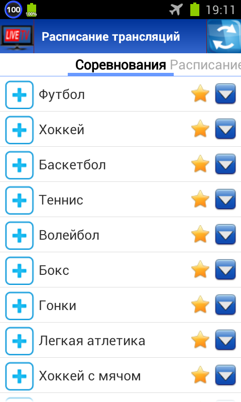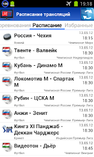 Это позволит облегчить интерфейс программы, сэкономить жизнь аккумулятора и память телефона. Объясню почему. Программа периодически скачивает расписание с сайта и сохраняет его в базу данных. Если вы удалите вид спорта или турнир то информация о нем не будет обрабатываться программой и не будет занимать место.