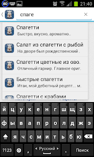 поиск по рецептам интегрирован в стандартный поиск Android;