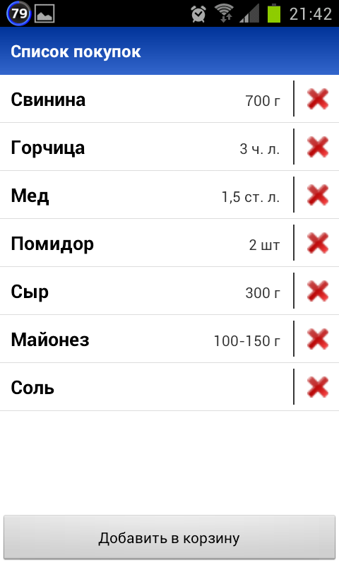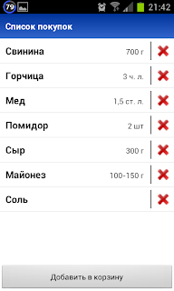 возможность добавлять рецепты в корзину покупок (в Pro версии);