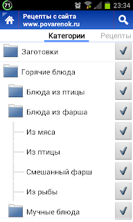 Категории рецептов имеют иерархическую (древовидную) структуру. Всего более 200 категорий.